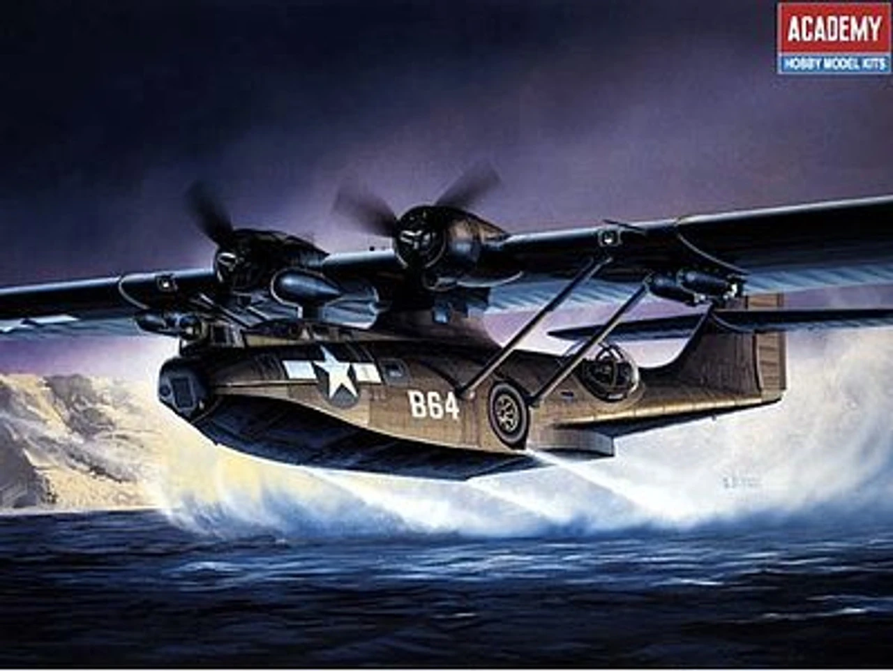 This is a plastic 1/72 Consolidated PBY-5A Catalina USN Patrol Airplane from Academy Plastics. It’s for experienced modelers.