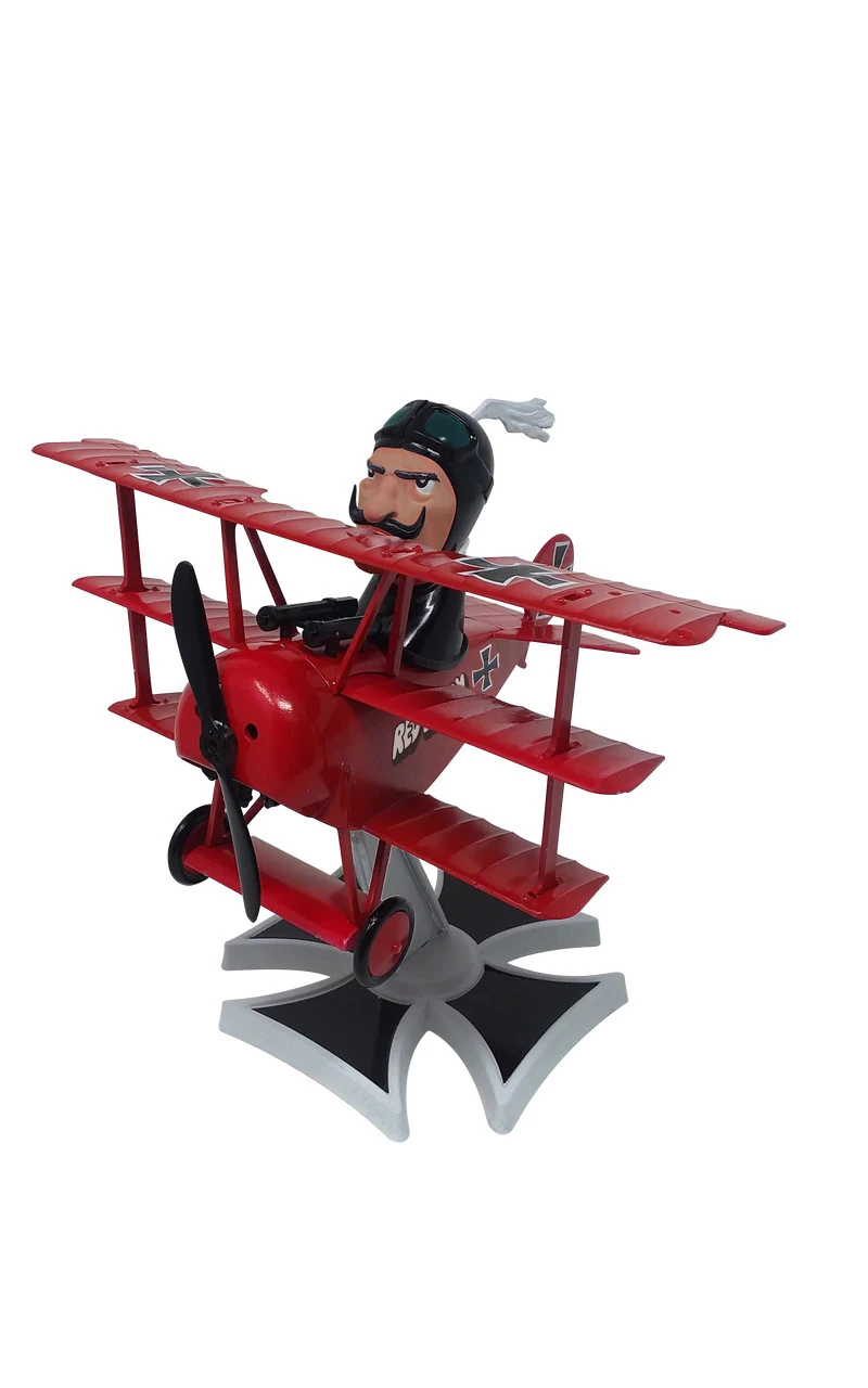 This kit comes molded in black, red and white. No painting required. Made from the Original molds dated 1971. This snap kit also includes the motor and motor contact. 28 pieces. Colorful sticker sheet. Requires 1 AA 1.5 volt battery (not included) to operate the propeller. Wingspan measures 7.25 Inches with a height of 7.5 inches.
