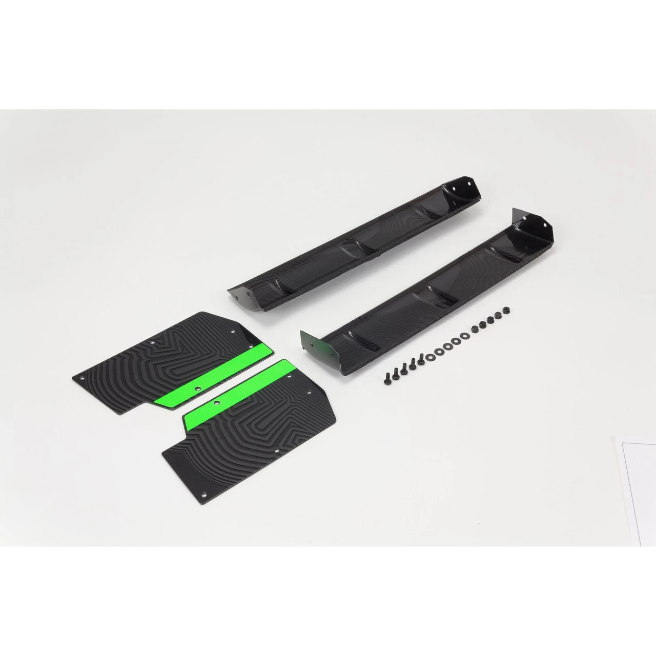 - Includes high and low downforce wings, wing endplates and wing attachment fasteners