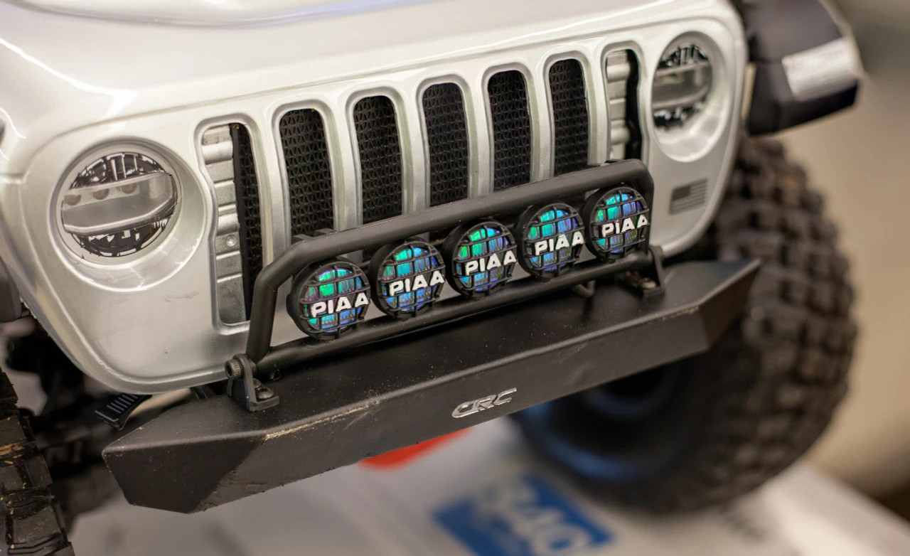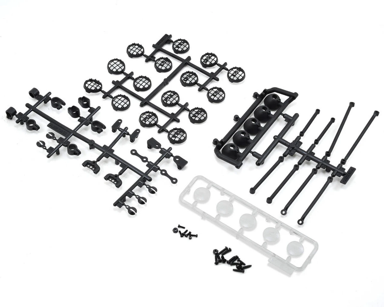 This is the Axial Universal 5 Bucket Light Bar Set. Axial’s Universal 5 Bucket Light Bar Set comes with a complete set of screws and plastic parts designed for a variety of Axial vehicles as well as a universal system for additional mounting applications. The light bar’s tubular design gives your vehicle cool scale looks and each light bucket can be outfitted with an LED light to help guide the way on those late night runs (LED lights sold separately). The set also includes three different mesh grilles for your lights: plain, Axial and officially licensed PIAA grill covers.
