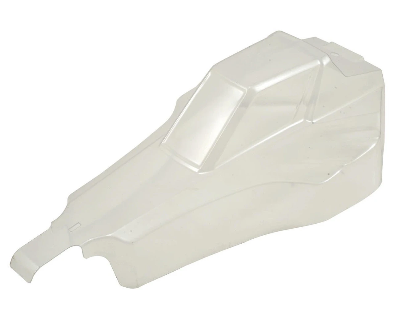 ECX AMP Clear Desert Buggy Body. This body is clear and trimmed, with factory applied overspray film. Package includes decal sheet.
