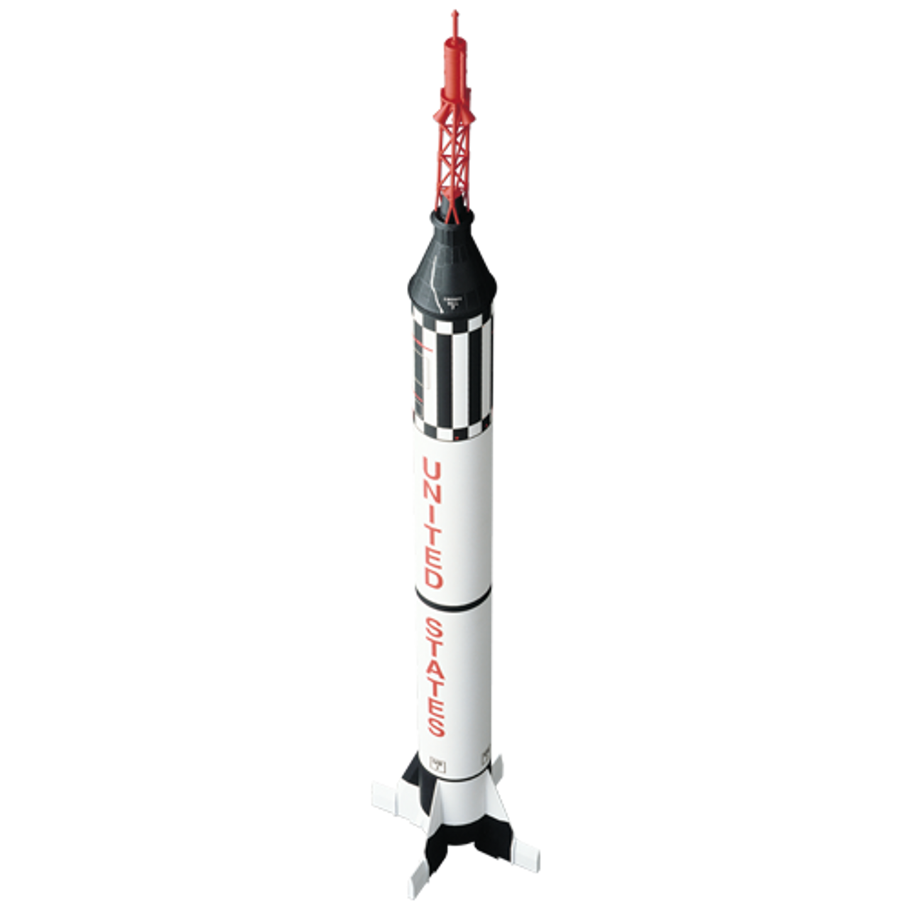 The Estes Mercury Redstone is an impressive 1:34 scale model of the historic NASA spacecraft and rocket. The finished kit stands nearly 29 inches tall and features laser-cut, layered balsa fins and a molded plastic model of Grissom’s Liberty Bell 7 and it’s Launch Escape System (LES). The set of detailed water-slide decals even includes the distinctive white “crack” that Gus painted onto the side of his spacecraft to make it resemble the actual Liberty Bell. This Advanced Level (formerly Skill Level 3) kit is a “must have” for all serious model rocketeers! Put this one on the flight line and countdown to launch, and watch it reach altitudes up to 200 feet on an Estes C6- engine. Rocket and spacecraft return together under a colorful 15 inch parachute, ready to prep and launch again.
