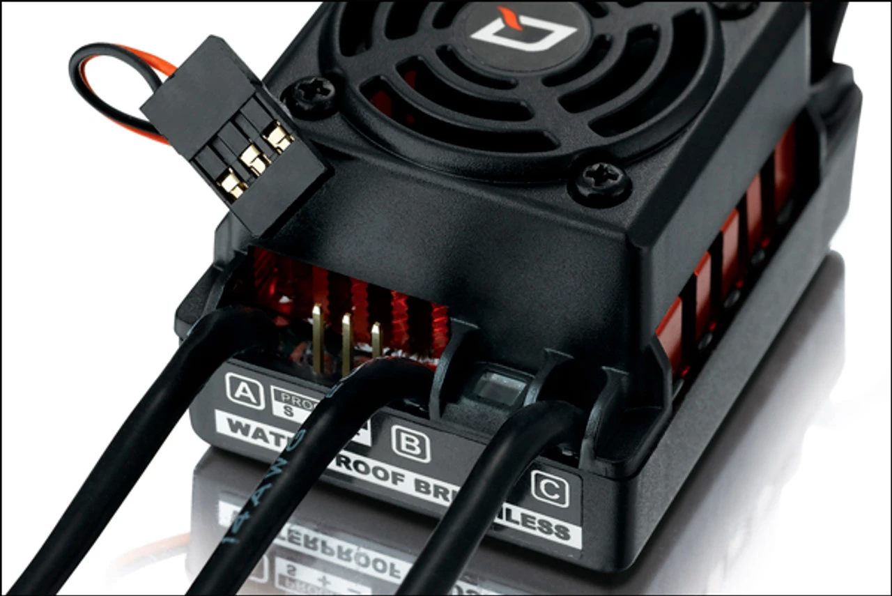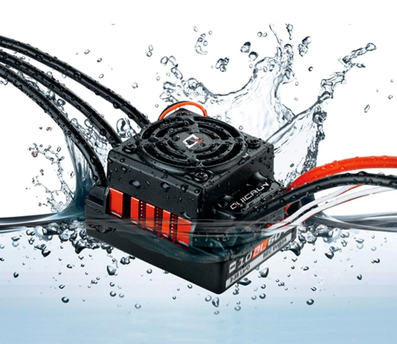 - Water-proof and dust-proof for all-weather races. (Note: please uninstall the cooling fan before using this ESC in water; Clean and dry it soon after the use for avoiding the connectors get rusty.)