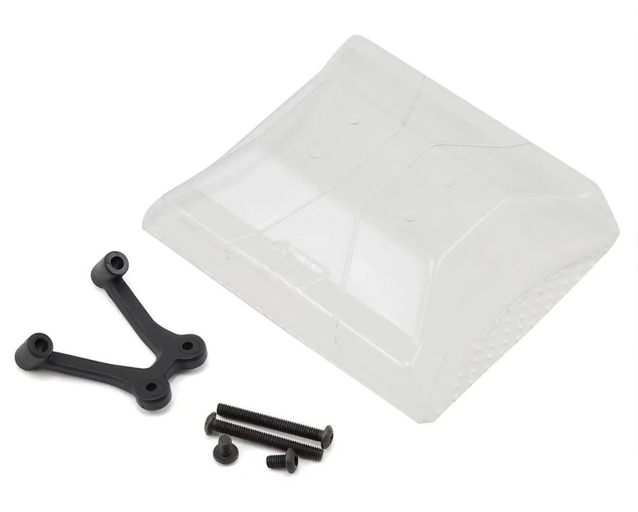 The wing mount itself attaches with supplied hardware to the top deck. Cut lines are included for easy trimming while dimples are located on the wing itself to indicate where to mount to the JConcepts front wing mount. The leading center section of the wing has been formed into a unique V-shape to perfectly flow and maneuver around the camber links and tower or front shocks.