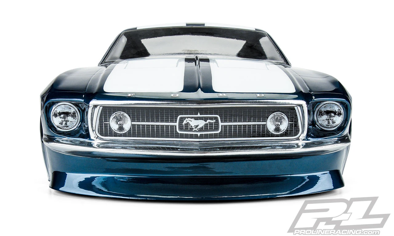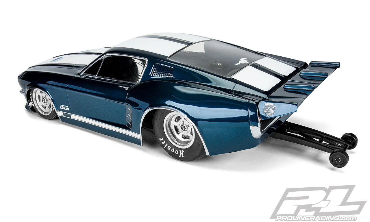 Ford fans, your time has come! Pro-Line is proud to introduce the iconic 1967 Mustang clear body to the no prep drag racing scene. The front end features a massively inset grill and headlights just like the full-size muscle car, which is only made possible with Pro-Line’s proprietary molding technology. This Mustang body has been faithfully recreated in 1/10 scale size and tuned specifically for drag racing. The body comes clear giving you the option to paint the body however you desire. Pro-Line even includes a drag-style rear wing to keep you going straight down the track. If you are a Mustang fan, then this is a must-have body for your drag car. Get your own 1967 Ford® Mustang body today!