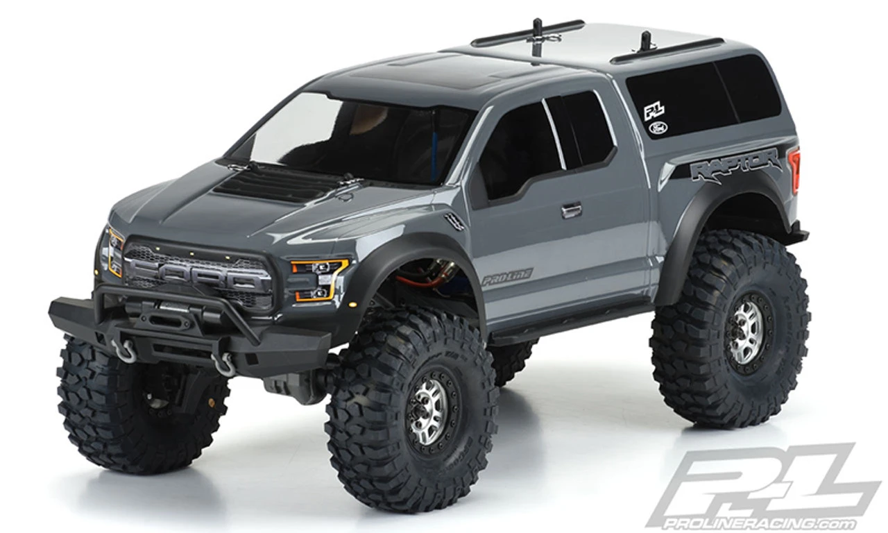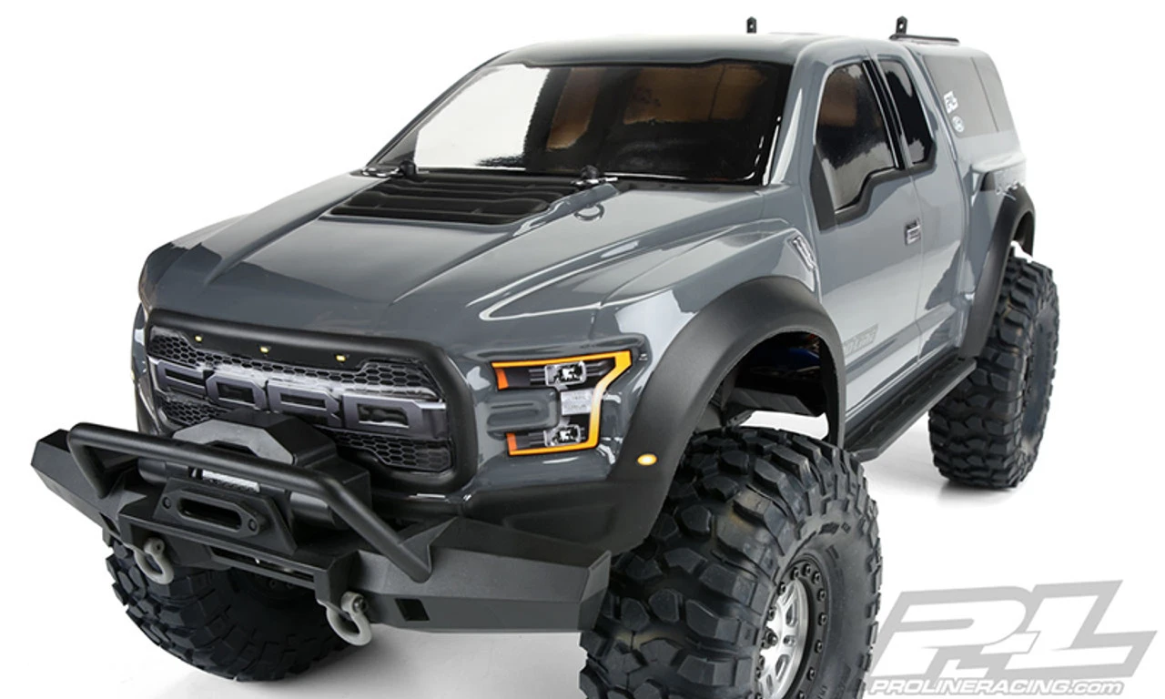 The Pro-Line 2017 Ford F-150 Raptor Body will completely transform your Truck into an Ultra Scale modern Raptor Rig perfect for Rock Crawling. The details from the full-size 2017 Raptor have been faithfully recreated and is designed to drop right onto the stock 12.8″ wheelbase TRX-4! This Pro-Line body is much lighter than the stock TRX-4® body for lower center of gravity and improved crawling performance. Window masks, Paint-then-peel overspray film and fully licensed detailed stickers are included to finish off the look.
