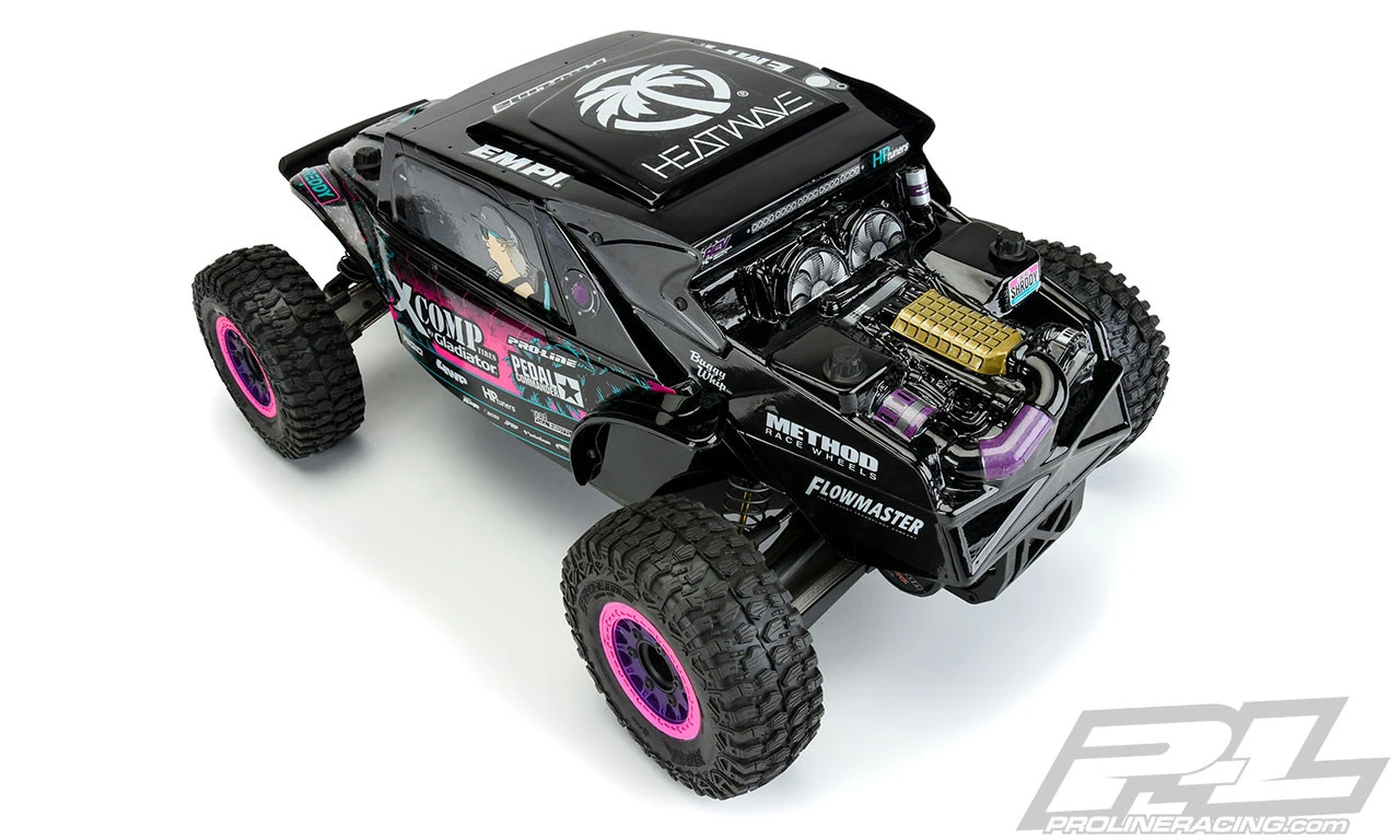 The Blake Wilkey Edition Megalodon is molded in durable Tough-Color Black material, which means you can go full-send without any fear of paint chipping off since the black is infused directly into the material. A fully precut wrap is included to deck out your Megalodon with Blake’s sponsors and signature fluorescent pink & teal livery. Window details are also included with optional Wilkey & co-pilot driver figure stickers.