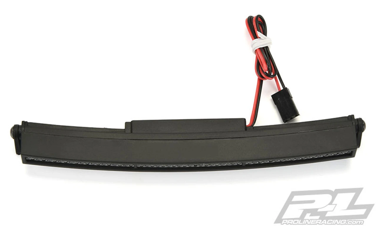 The Pro-Line 6″ Curved Super-Bright LED Light Bar Kit features 30 LED bulbs and has been pre-wired with a 12” long cable that can plug directly into your receiver for power. The Lights are rated for 6V to 12V power, so you also have the option to plug directly into a 3S lipo power source for incredibly bright LED Light!