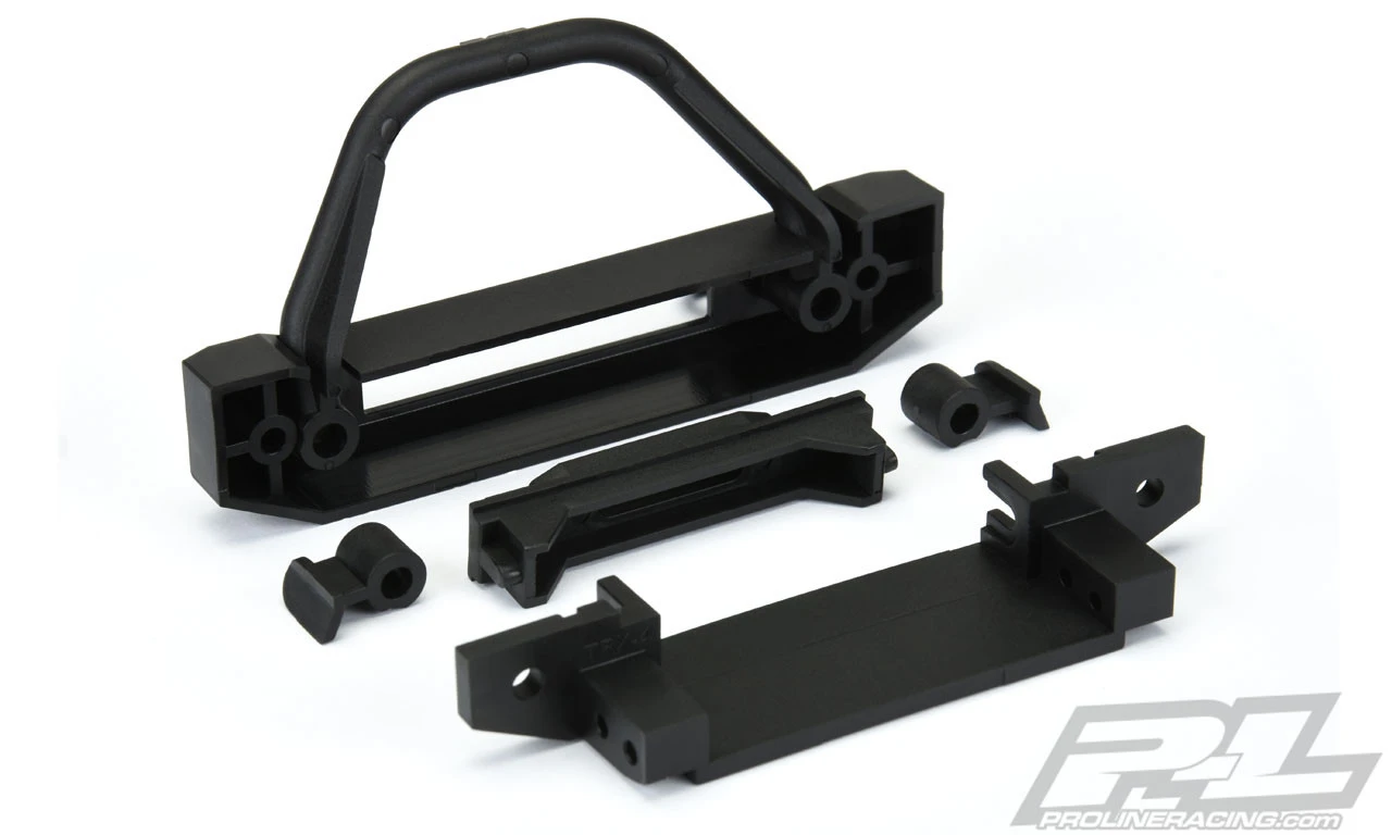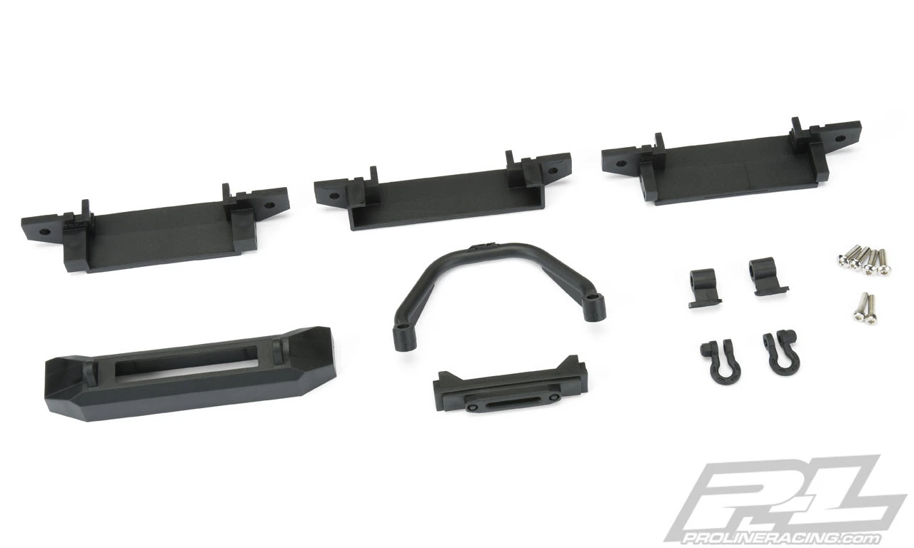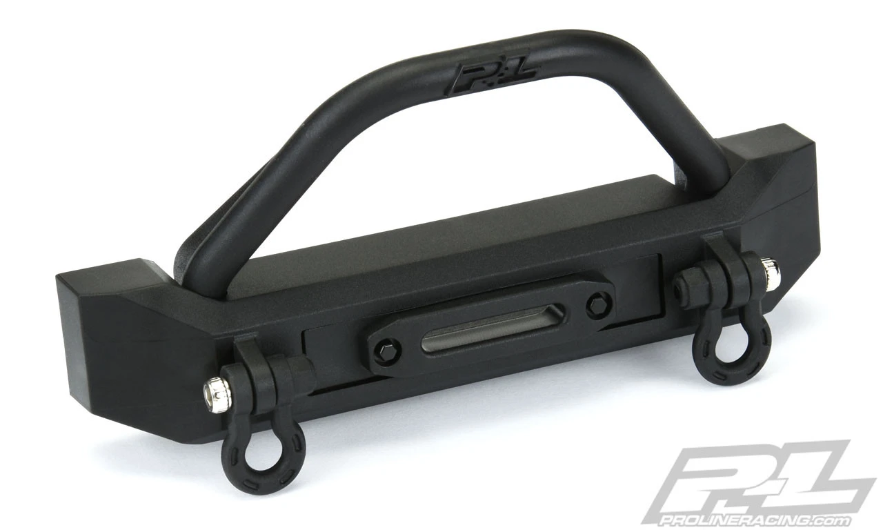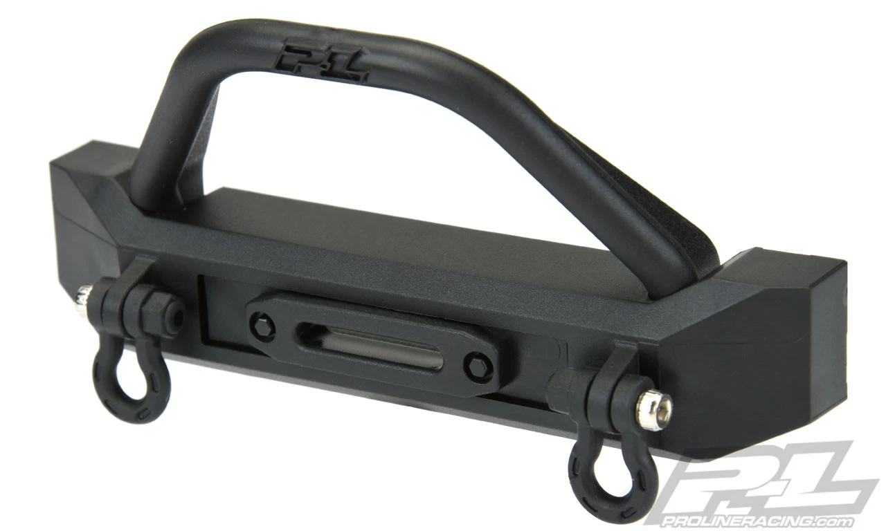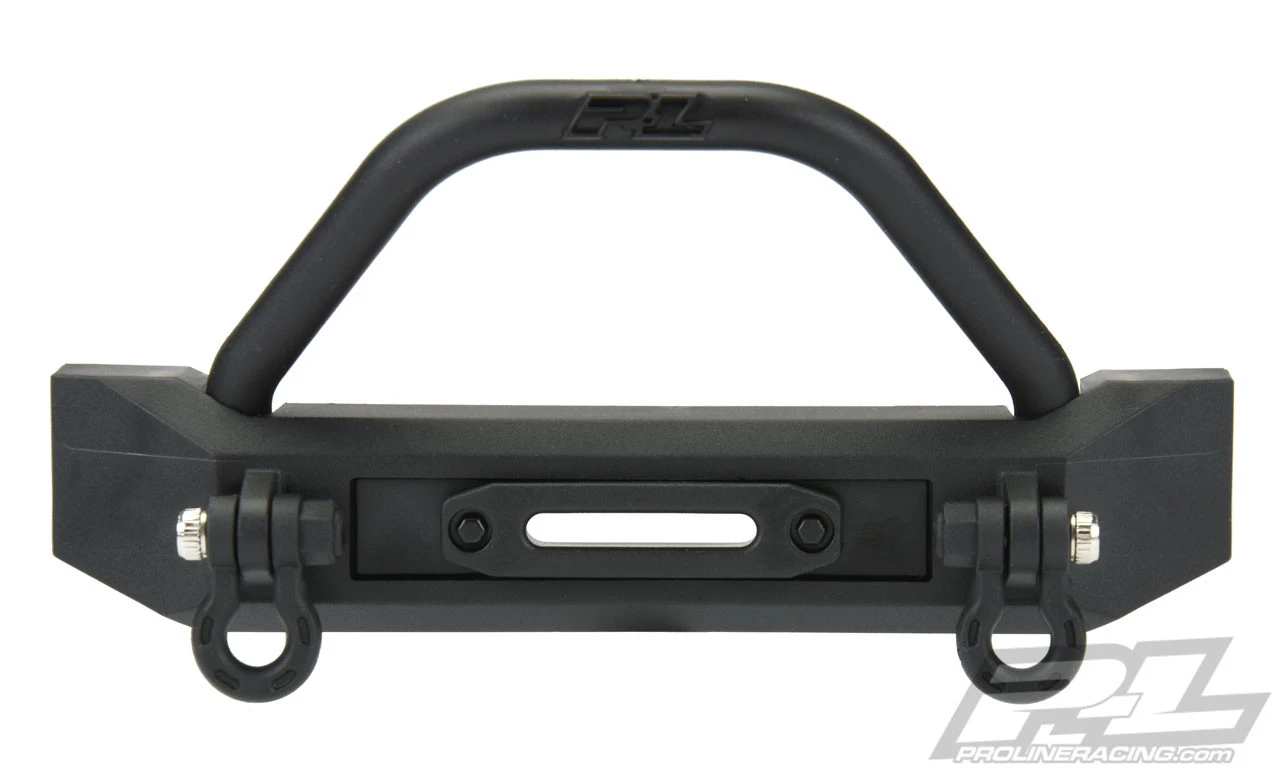 The Pro-Line Ridge-Line High-Clearance Crawler Front Bumper was developed to provide a lightweight, high performance bumper option for SCX10/II , TRX-4 and Ascender models. This bumper was designed from the ground up to achieve the highest front bumper clearance possible while maintaining a Scale Appearance. The Ridge-Line High-Clearance bumper is also extremely versatile allowing you to run the included molded winch fairlead or swap it out for Pro-Line’s 2” Super-Bright LED Light Bar (PRO6276-00 – not included) for an integrated bumper light! Pro-Line engineers also designed the bumper to allow for the use of the included Push Bar or eliminating the Push Bar altogether for a sleeker, low-profile look. D-Ring shackles are included to finish off the Scale Appearance of this 4” wide bumper.