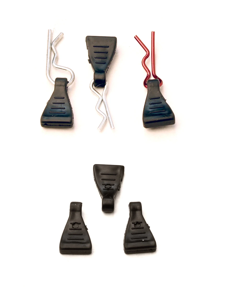 Racer’s Edge body clip pulls are the solution to lost clips and damaged fingernails by providing a convenient and secure way to remove body clips from any type of post. Made of flexible yet durable rubber composite, they are easily used with a wide range of clip sizes ranging from micro to monster. Conveniently sold in packages of six.