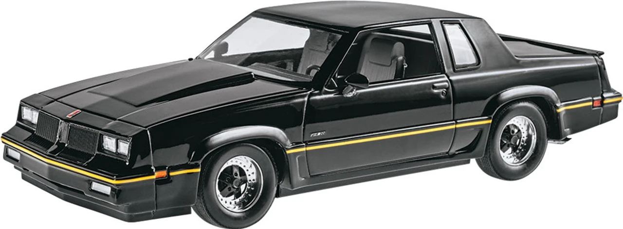 In 1985, Bill Porterfield, Oldsmobile® Future Systems and Technology Engineer, wanted to showcase Oldsmobile’s product performance. His goal was to “outhandle the Corvette®”. The main focus was on the suspension capabilities and aerodynamics of the FE3-X. The FE3-X was a featured car at all the major auto shows around the country, as well as in articles in the major automobile publications. Kit features full FE3-X aero body package, Tampo printed gold line wheels, choice of two wheel sets, chrome plated parts, and soft black tires.