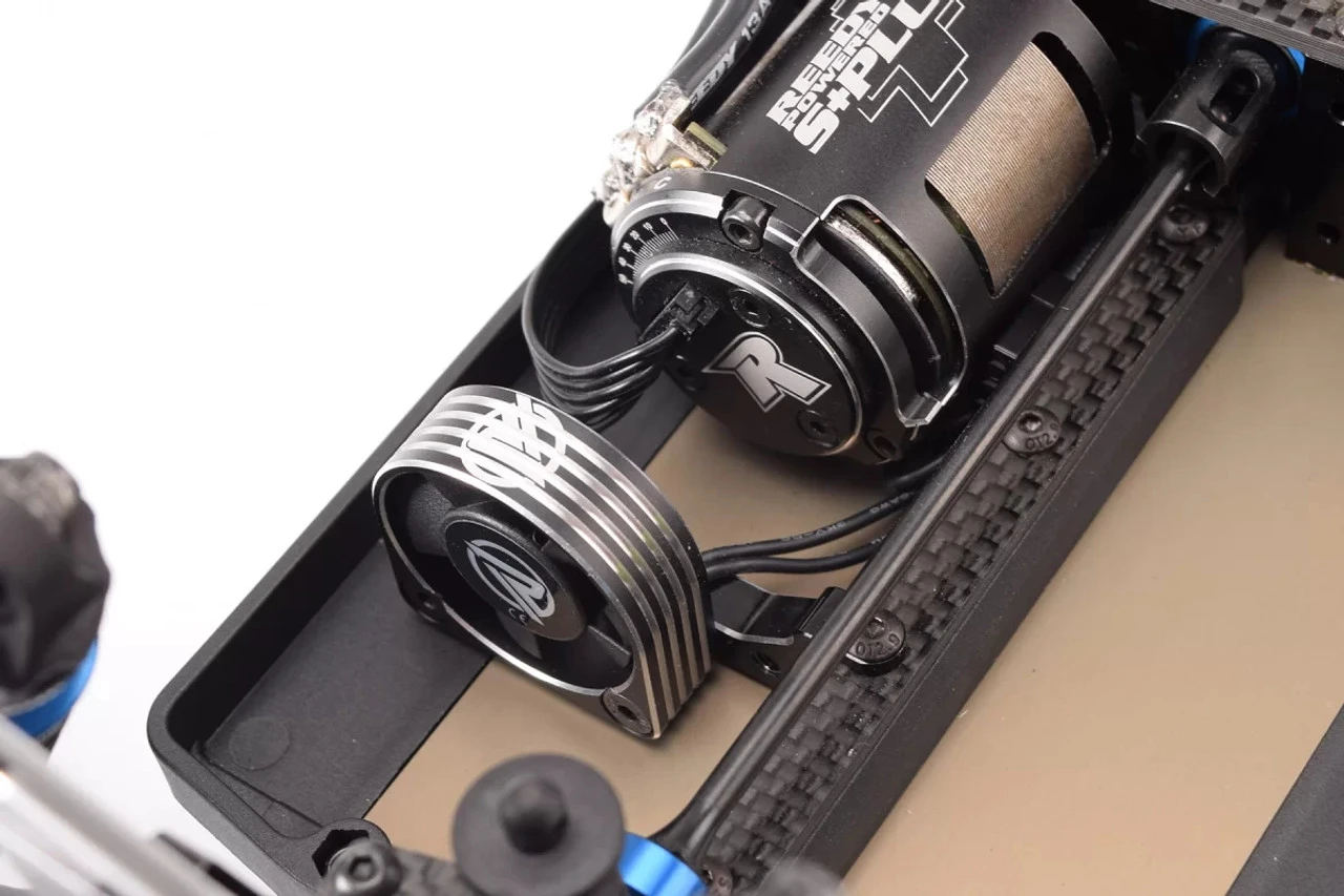 The RDRP B74 Aluminum Fan Mount for Team Associated’s latest 1/10th 4WD buggy is machined from aircraft-grade 7075-T6 aluminum and attaches to the center chassis brace by using an already existing mounting point. The mount is designed for 30mm and 40mm fan units that are held in place with much greater reliability compared to just using double-sided tape while also adding visual impact and cool factory looks. The black anodized item comes laser-etched to show off your passion for everything RDRP and it only adds minimal weight.