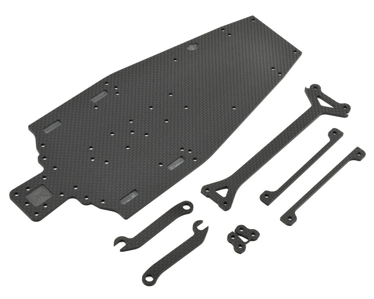 This is an optional Schumacher KF2 Mid Motor Conversion Set. The conversion moves the motor cluster back by 61mm and puts the lipo in front of the motor. The included carbon fiber chassis accepts all motor positions, Standard, Low grip and Mid as well as all LiPo layouts. The shift gives the KF2 more rear traction and allows the power to be transmitted easier into forward bite and acceleration.