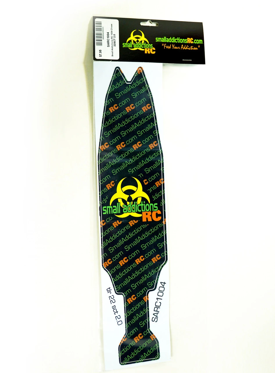 This is a Small Addictions RC 1004 Team Losi Racing 22SCT 2.0 Pre-cut Chassis Protective Sheet. Printed and laminated with high grade automotive film, this quality item is now available to you to protect against friction and dirt. The durable and low-resistance material fits the chassis like a glove while giving you the assurance your chassis is well cared for with the flair you desire in one easy package.