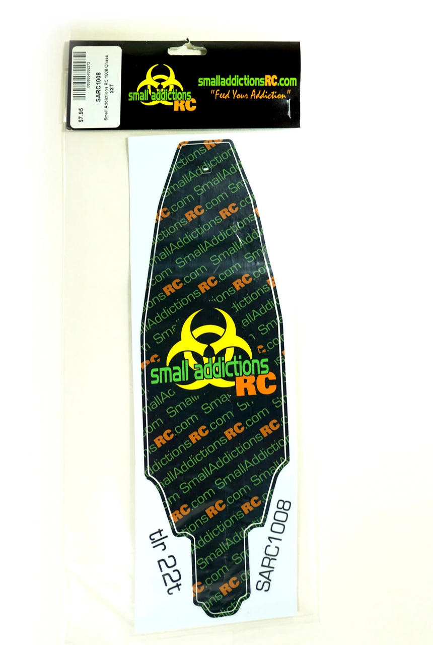 This is a Small Addictions RC 1008 Team Losi Racing 22T Pre-cut Chassis Protective Sheet. Printed and laminated with high grade automotive film, this quality item is now available to you to protect against friction and dirt. The durable and low-resistance material fits the chassis like a glove while giving you the assurance your chassis is well cared for with the flair you desire in one easy package.