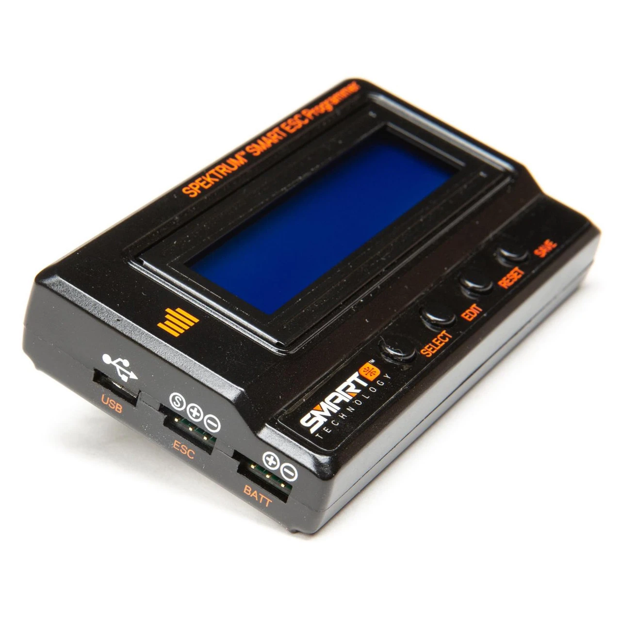 Set, review, adjust and save the operating parameters of your Avian and Firma electronic speed controls using the Spektrum Smart ESC Programmer. When connected to a PC using the included USB cable, the programmer will update Smart ESC firmware and can adjust parameters through the Spektrum SmartLink app. You can also use it to check the balance of your LiPo battery cells.