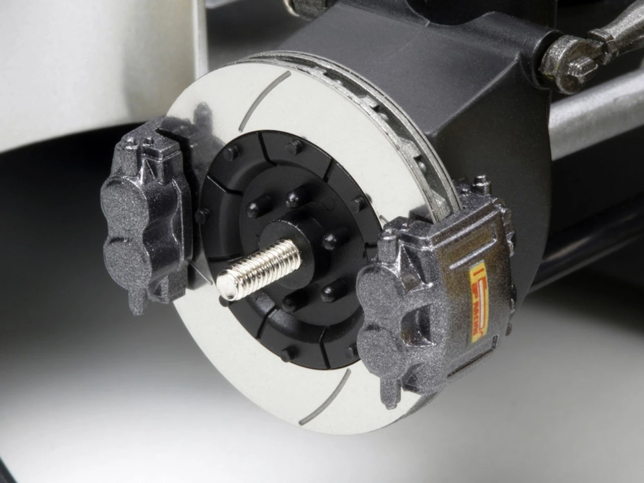 - Comes with metal-plated parts to recreate wings and air intakes, and photo-etched parts to depict radiator, intercooler, oil cooler and brake discs, and metal transfers for use on side mirrors and instrumental panel (new).