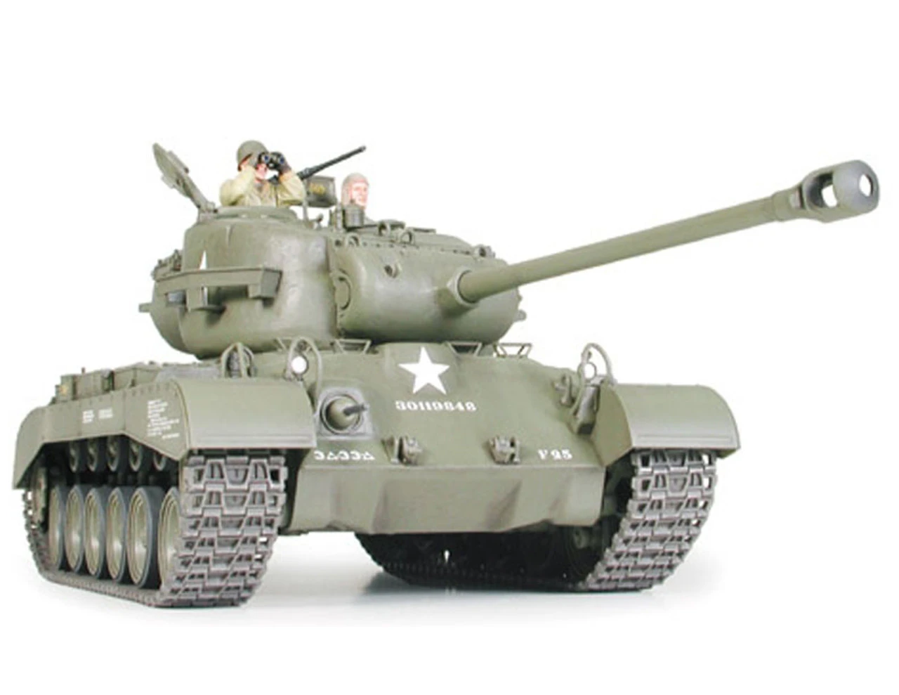 The U.S. Medium Tank M26 Pershing made its appearance at the end of WWII to allow the American army to stand up to the wrath of German tanks. The Pershing which was equipped with a long 90mm gun and exhibited incredible mobility, was first deployed to the European front in February 1945 as part of the effort to invade the German homeland. The Pershing, of which 200 were used against Germany until its surrender, successfully engaged Tiger I and Pz.kpfw. IV tanks. When the Korean War began in June 1950. The M26 also fought successfully against the rival T34/85 Soviet built tanks of the North Korean and Chinese volunteer armies.