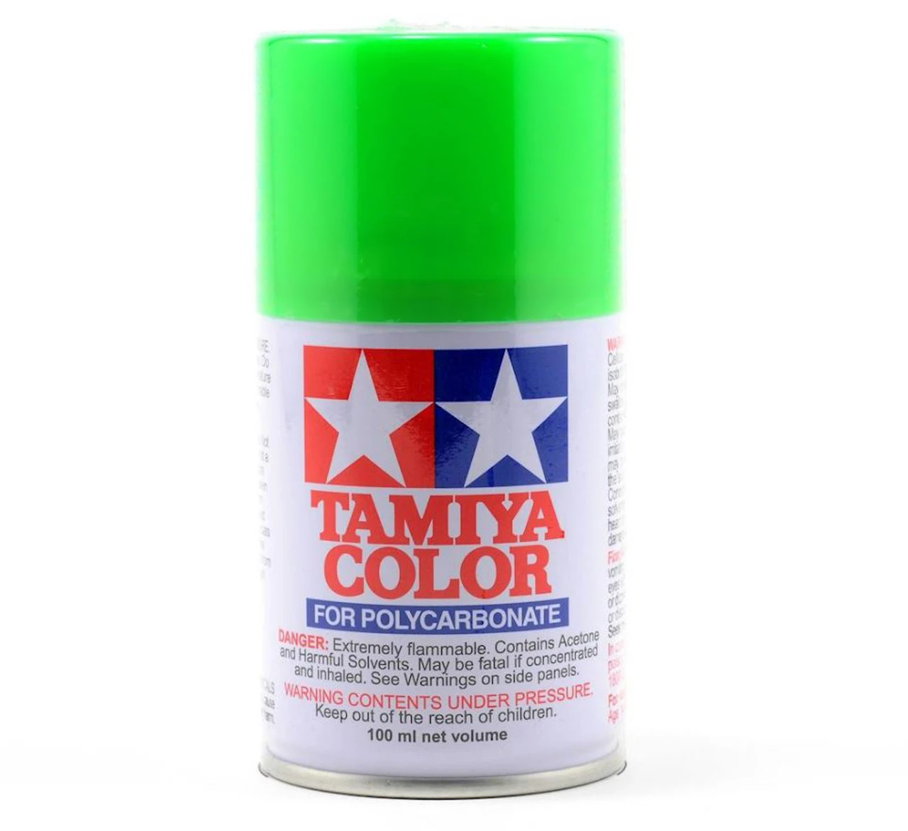 This is a 3oz can of polycarbonate spray paint from Tamiya. These spray paints were developed especially for decorating transparent polycarbonate (Lexan) bodies used in R/C car modeling. Each can contains 100ml of paint, which is the appropriate amount for finishing a model. Small detail work should be brush painted beforehand using Tamiya bottle paints for polycarbonate. Paint the body from the inside, keeping the can about 30cm from the surface. After curing, apply another coat. These paints are impervious to oil and fuels, so they can be safely used on gas-powered R/C bodies. Never use these paints on plastic models.