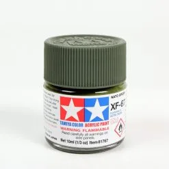 Tamiya acrylic paints are made from water-soluble acrylic resins and are excellent for either brush painting or air-brushing. These paints can be used on styrene resins, Styrofoam, wood, plus all of the common model plastics. The paint covers well, flows smoothly, and can be blended easily. Prior to curing, paint can be washed away with plain water.