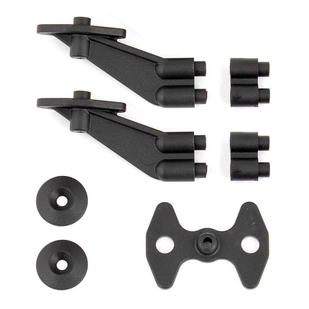 Team Associated B6 Wing/Body Mount. This is the replacement wing mount for the RC10 B6 and B6D buggies. Package includes left and right wing braces, shim plate and wing mount buttons.