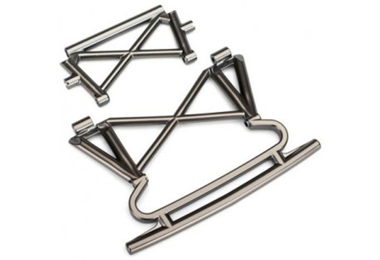 This is an optional replacement Traxxas Front Bumper Set for the Unlimited Desert Racer in Black Chrome finish. This set includes the front bumper and bumper support.