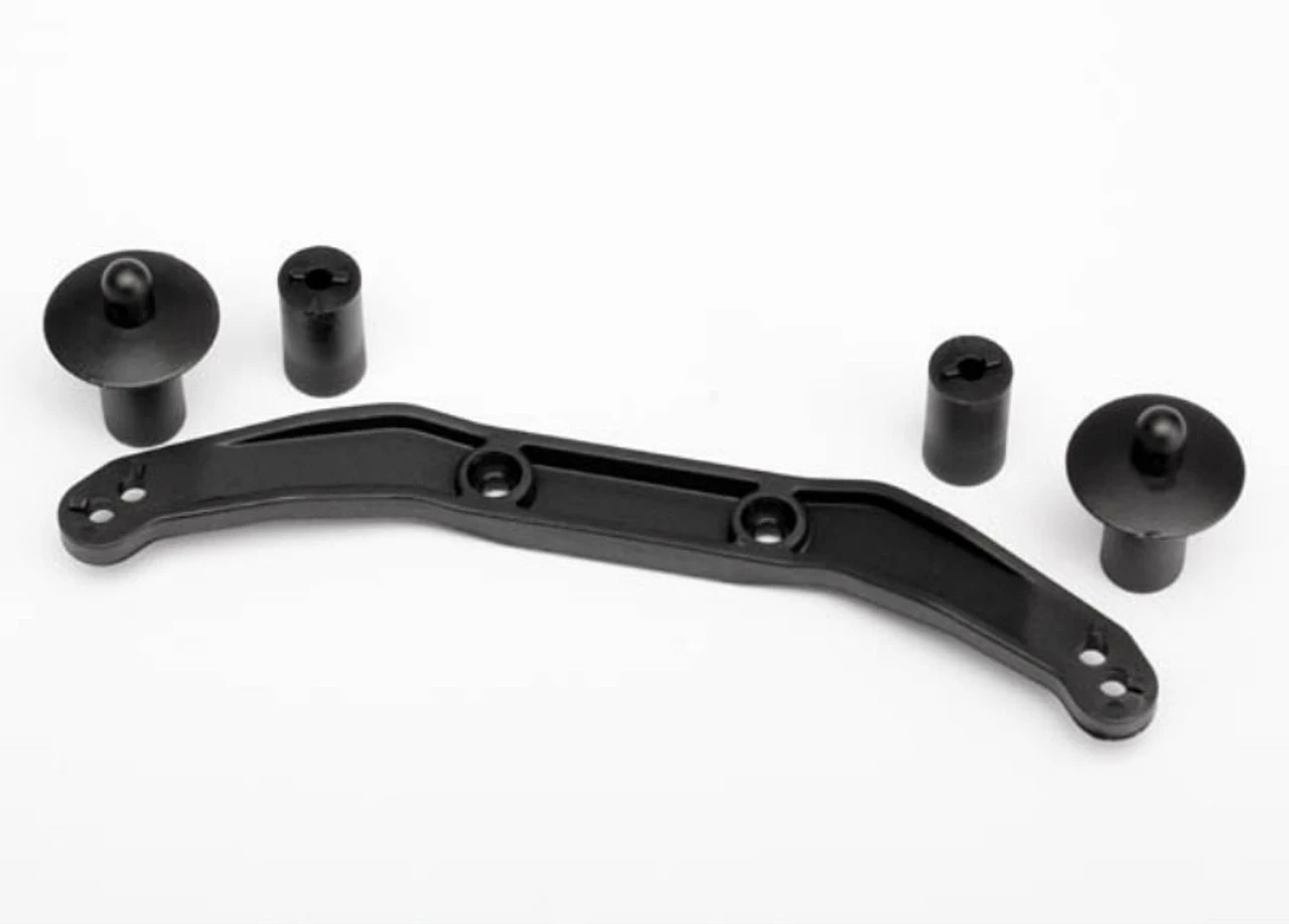 This is a replacement Traxxas Body Mount and Post Set, and is intended for use with the Traxxas Slash 4×4 line of 1/10 scale 4WD short course trucks. This body mount can be used in the front or rear of the truck and includes two body posts.