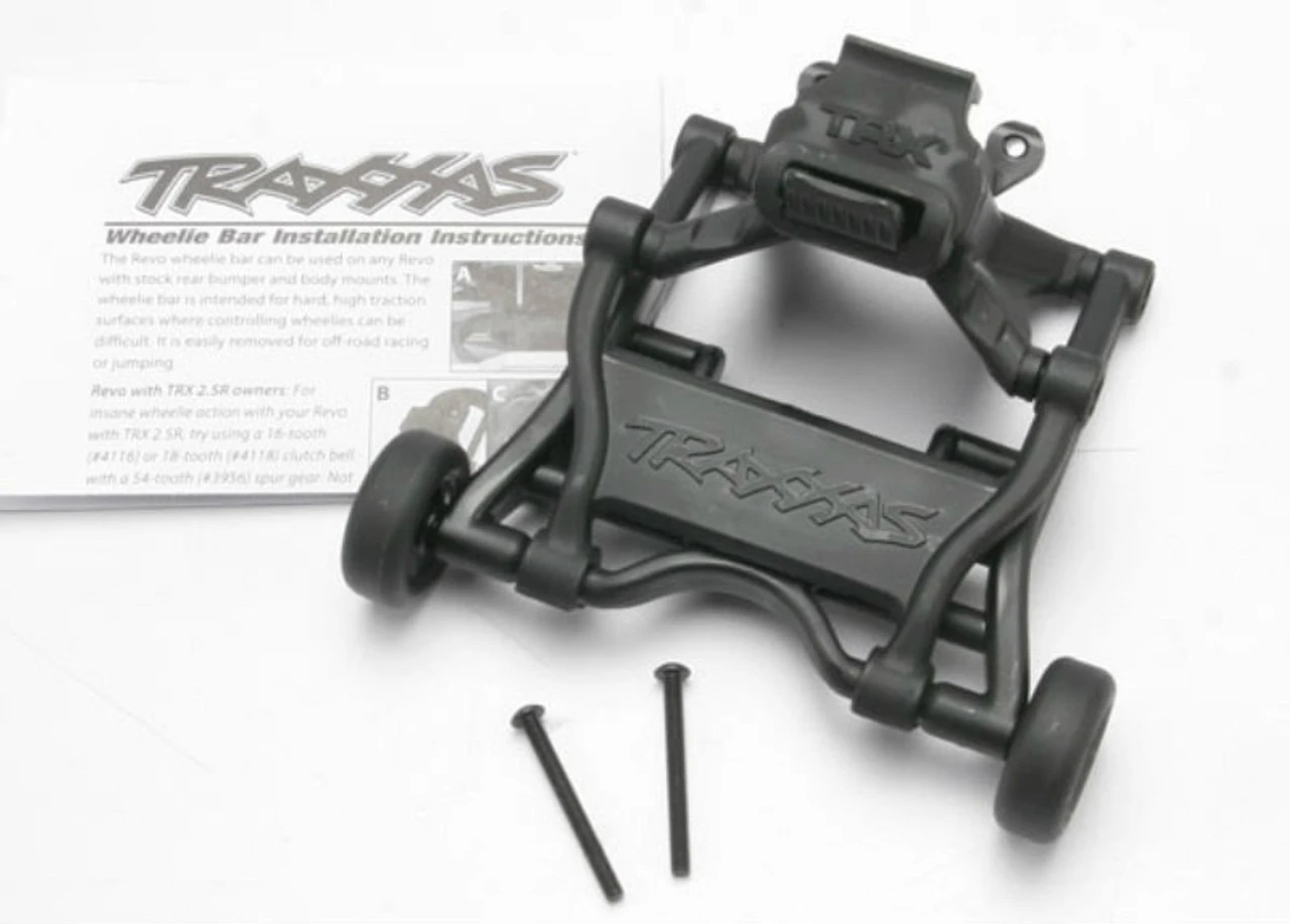 The accessory Revo wheelie bar assembly features a unique quick release design that is compatible with Revo trucks, nitro and electric. The wheelie bar assembly is easy to install for controlled wheelies on demand. Four snap-in adjustment positions allow you to choose how extreme you want your wheelie action to be. When it is time to head off-road, a convenient quick release tab makes removal and installation a snap. The wheelie bar mount is compatible with all factory Revo configurations including sway bars and wing mounts.