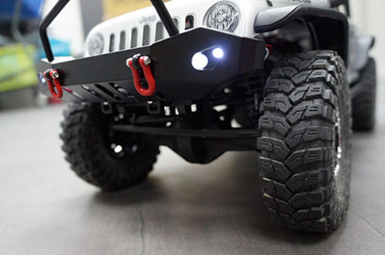 This is the Yeah Racing Front and Rear Bumper Set, with Heavy Duty Shackles and included LED’s. These heavy-duty bumpers are made from aluminum alloy material and feature great realistic looks, with real functionality thanks to the shackle points and LED lighting.