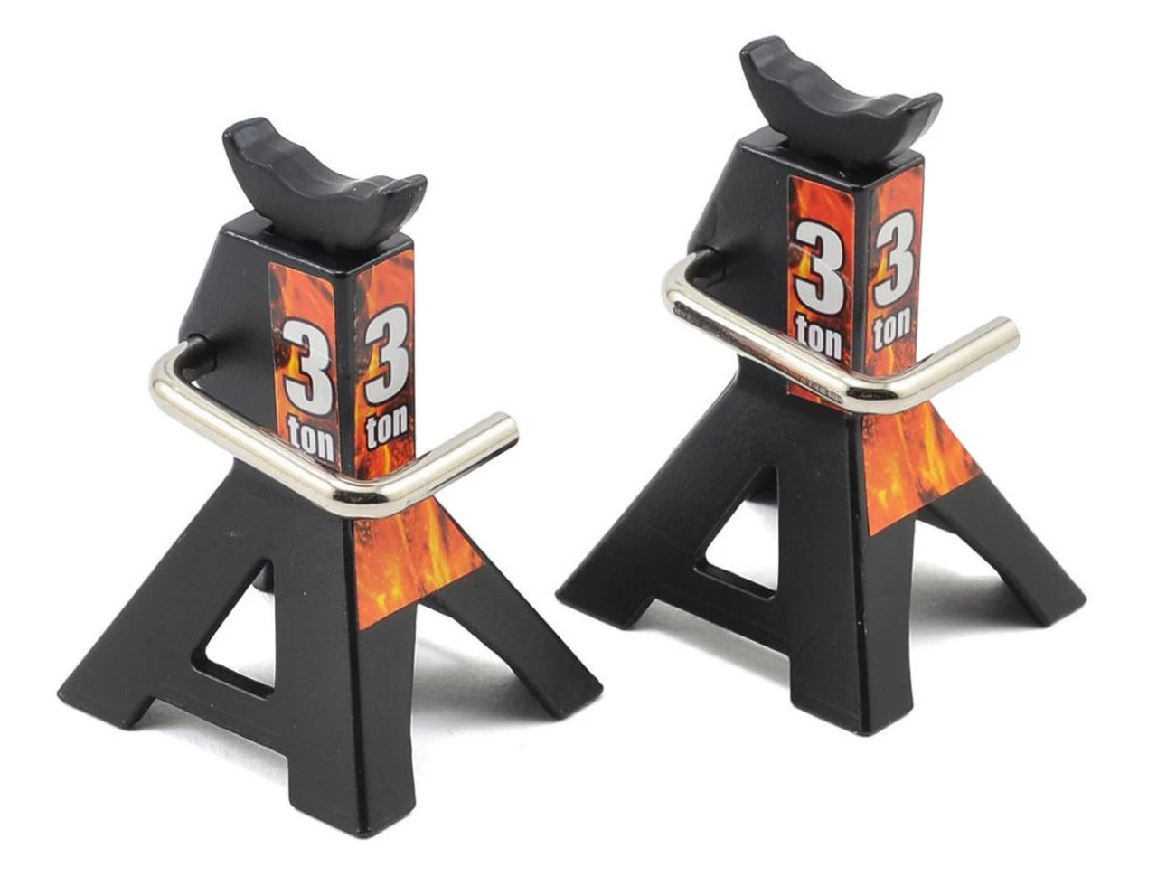 This two pack of Yeah Racing 1/10 Height Adjustable 3 Ton Jacks feature realistic looks and functions similar to the real thing. The jacks can support and hold most cars and trucks safely off the ground, perfect for RC repair work or storage. The metal construction and scale size of the jacks make them easily portable and super tough, making them the perfect addition to your RC garage or auto shop.
